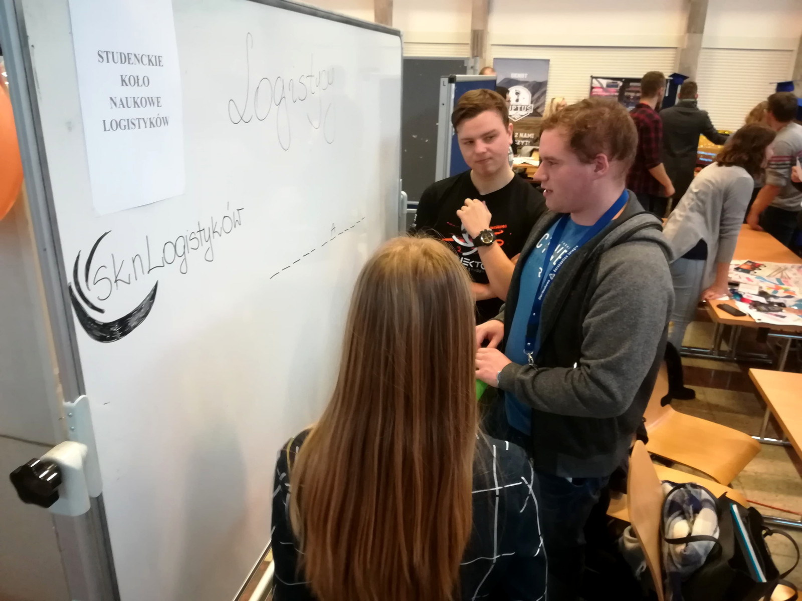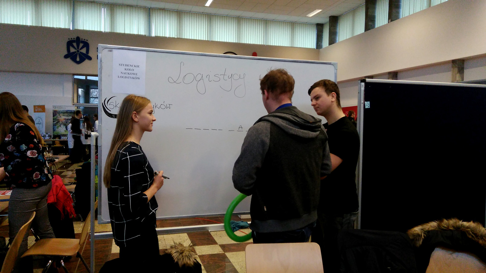 Logistycy przygotowali dla gości wróżby logistyczne, kalambury oraz grę w wisielca, które w ciekawy sposób przybliżały pojęcia związane z zawodem logistyka. Każde poprawnie wykonane zadanie było nagradzane cukierkami oraz ciasteczkami domowej roboty, które zostały upieczone przez członkinie SKNL! Każda osoba odwiedzająca stanowisko logistyków mogła dowiedzieć się czegoś o zakresie i sposobie działania koła naukowego, jak również o korzyściach jakie płyną z uczestnictwa w nim.