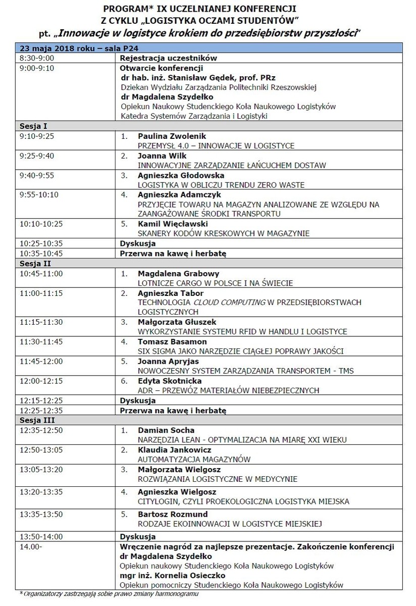IX UCZELNIANĄ KONFERENCJĘ „LOGISTYKA OCZAMI STUDENTÓW” PT.: