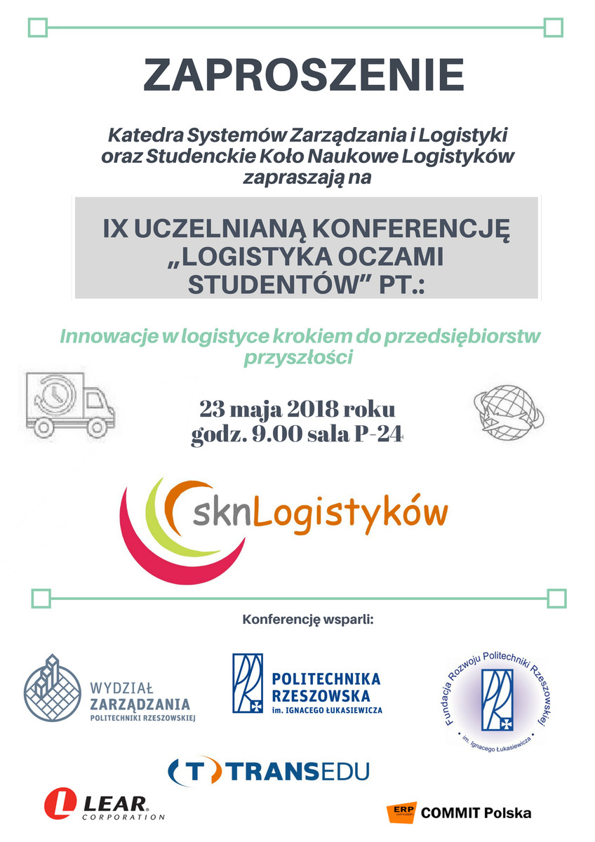 Katedra Systemów Zarządzania i Logistyki oraz Studenckie Koło Naukowe Logistyków zapraszają na