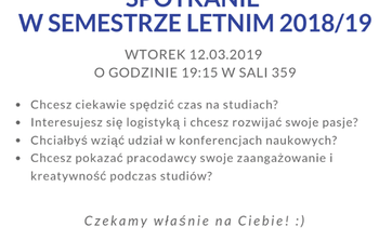 W dniu 12.03.2019 roku odbyło się pierwsze spotkanie Studenckiego Koła Naukowego Logistyków.