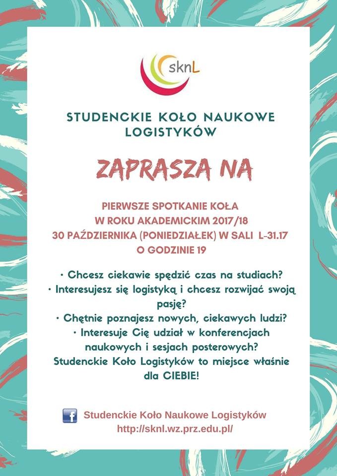 Spotkanie odbędzie się 30 października 2017 r. w sali L17 (sala znajduje się w części L31 budynku) o godzinie 19.