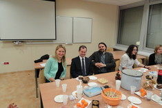 Następnie wszyscy połamali się opłatkiem, podczas którego każdy z osobna składał sobie serdeczne życzenia świąteczne. W tym wyjątkowym dniu na świątecznym stole wigilijnym nie zabrakło typowej potrawy wigilijnej: czerwonego barszczu z uszkami oraz dodatkowych przekąsek przygotowanych przez studentów SKNL. Spotkanie przebiegało w uroczystym nastroju, przeplatane kolędami.