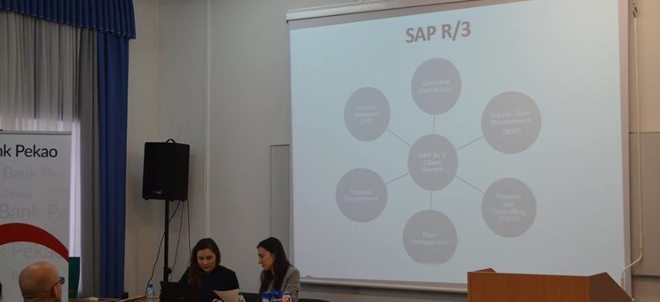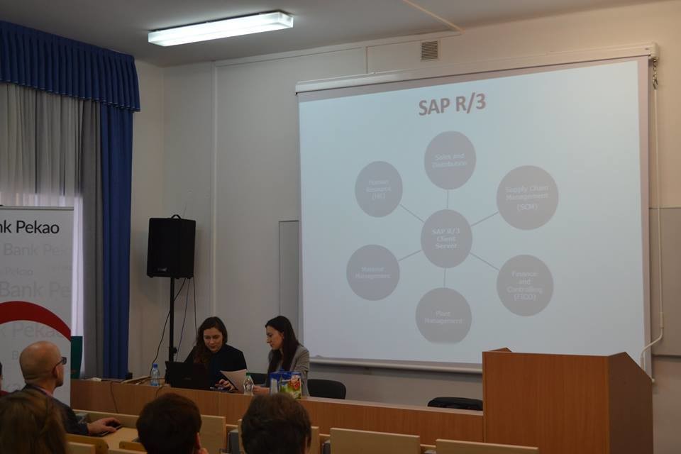 Agnieszka i Magda wygłosiły referat pt. „Komputerowe systemy wspomagania decyzji, a procesy produkcyjno- logistyczne w przedsiębiorstwach”.