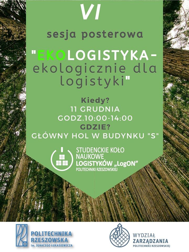 Już 11 grudnia (wtorek, 10:00-14:00) odbędzie się VI Sesja Posterowa organizowana przez Studenckie Koło Naukowe Logistyków „LogON”. Tematem przewodnim sesji jest ekologia, a konkretnie kwestie dotyczące logistyki