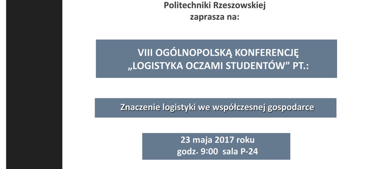 Zaproszenie na VIII Konferencję „Logistyka oczami studentów” pt. Znaczenie logistyki we współczesnej gospodarce - 23 maja 2017 r.
