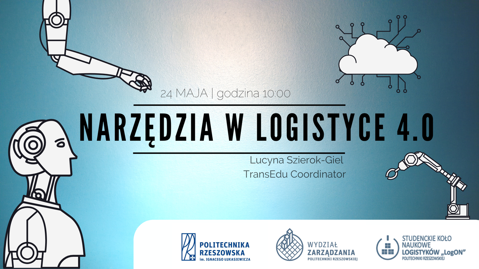 Studenckie Koło Naukowe Logistyków „LogON” oraz Pan mgr Paweł Bełch – koordynator ds. współpracy PRz ze spółką Trans.eu, zapraszają na wykład otwarty pt. „Narzędzia w logistyce 4.0”, który odbędzie się w dniu 24 maja 2021 r. o godz. 10.00.