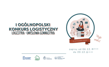 Dnia 12 stycznia 2022 r. o godzinie 17:00 odbędzie się I Ogólnopolski Konkurs Logistyczny “Logistyka - umysłowa gimnastyka”. Do udziału zapraszamy studentów wszystkich uczelni wyższych w Polsce.