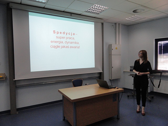 1) inż. Justyny Grabskiej, która opisała specyfikę pracy na stanowisku spedytora w ujęciu praktycznym,