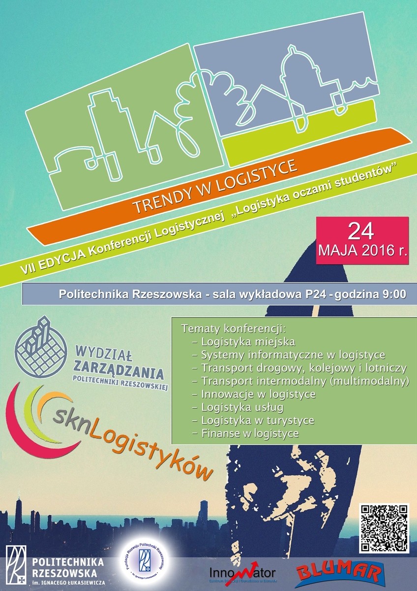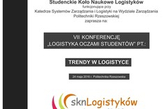 W dniu 24 maja 2016 roku odbyła się VII Konferencja Logistyczna z cyklu „Logistyka oczami studentów” pt. Trendy w logistyce. Konferencja została zorganizowana przez Studenckie Koło Naukowe Logistyków, funkcjonujące przy Katedrze Systemów Zarządzania i Logistyki na Wydziale Zarządzania Politechniki Rzeszowskiej, a koordynatorami były mgr Paulina Bełch i mgr Magdalena Szydełko. Konferencję otworzyli: Prodziekan ds. Kształcenia – dr inż. Grzegorz Lew oraz Opiekun SKNL – mgr Paulina Bełch.