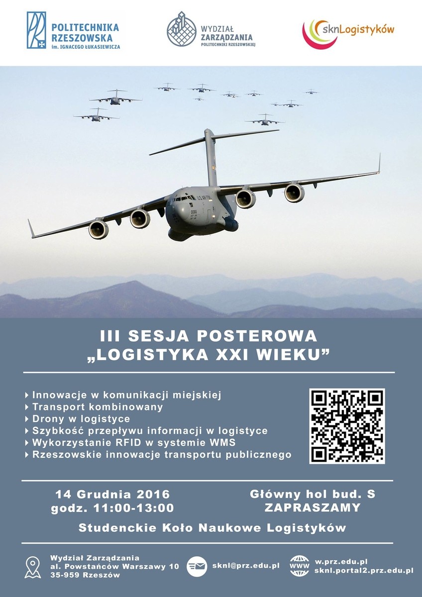 W dniu 14 grudnia 2016 roku w holu budynku S odbyła się trzecia na Wydziale Zarządzania sesja posterowa. Organizatorem wydarzenia, którego tematem przewodnim było hasło "Logistyka XXI wieku" było Studenckie Koło Naukowe Logistyków wraz z opiekunem mgr Pauliną Bełch.