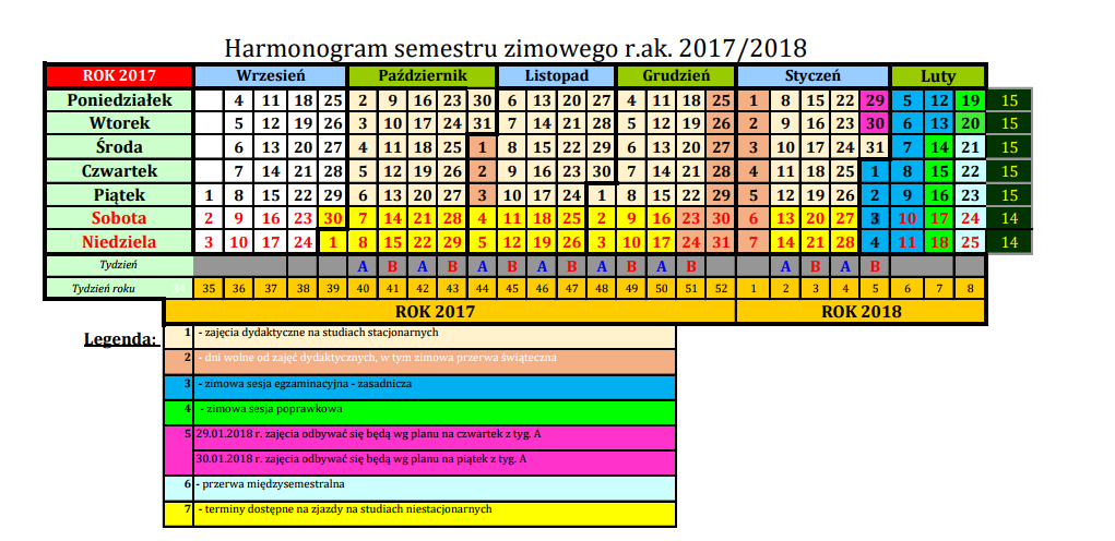 Spotkania w semestrze zimowym r. ak. 2017/18